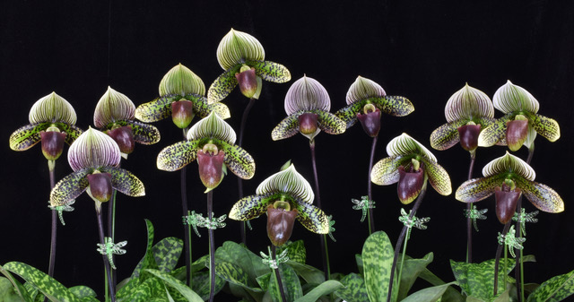 In this location we are able to specialize in intermediate temperature orchids. Our daily highs in summer are about 85 degrees with a 20 degree drop at night. in winter our highs are around 75 and 60 at night. These conditions allow us to specialize in our favorite orchids, Paphiopedilums, Phragmipediums, Angraecums and Lycaste.