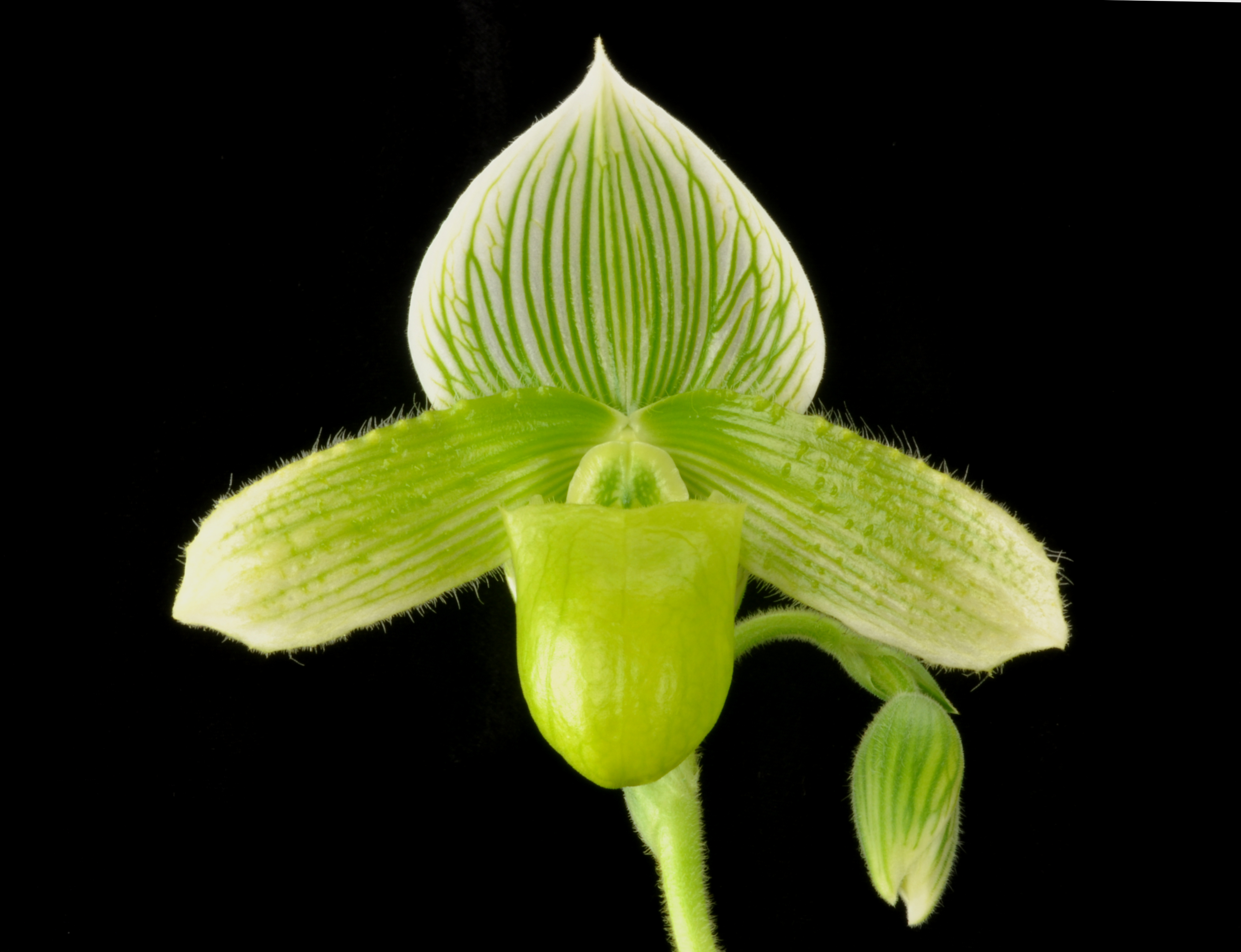 In this location we are able to specialize in intermediate temperature orchids. Our daily highs in summer are about 85 degrees with a 20 degree drop at night. in winter our highs are around 75 and 60 at night. These conditions allow us to specialize in our favorite orchids, Paphiopedilums, Phragmipediums, Angraecums and Lycaste.