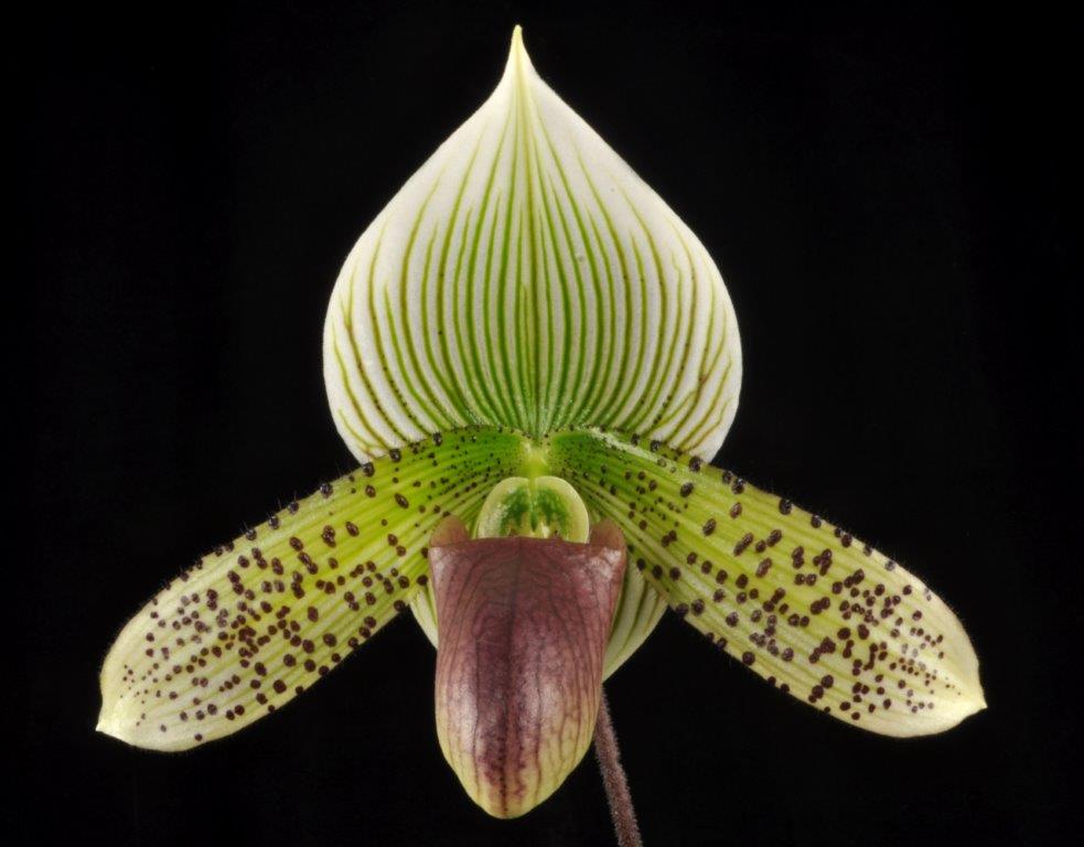 In this location we are able to specialize in intermediate temperature orchids. Our daily highs in summer are about 85 degrees with a 20 degree drop at night. in winter our highs are around 75 and 60 at night. These conditions allow us to specialize in our favorite orchids, Paphiopedilums, Phragmipediums, Angraecums and Lycaste.