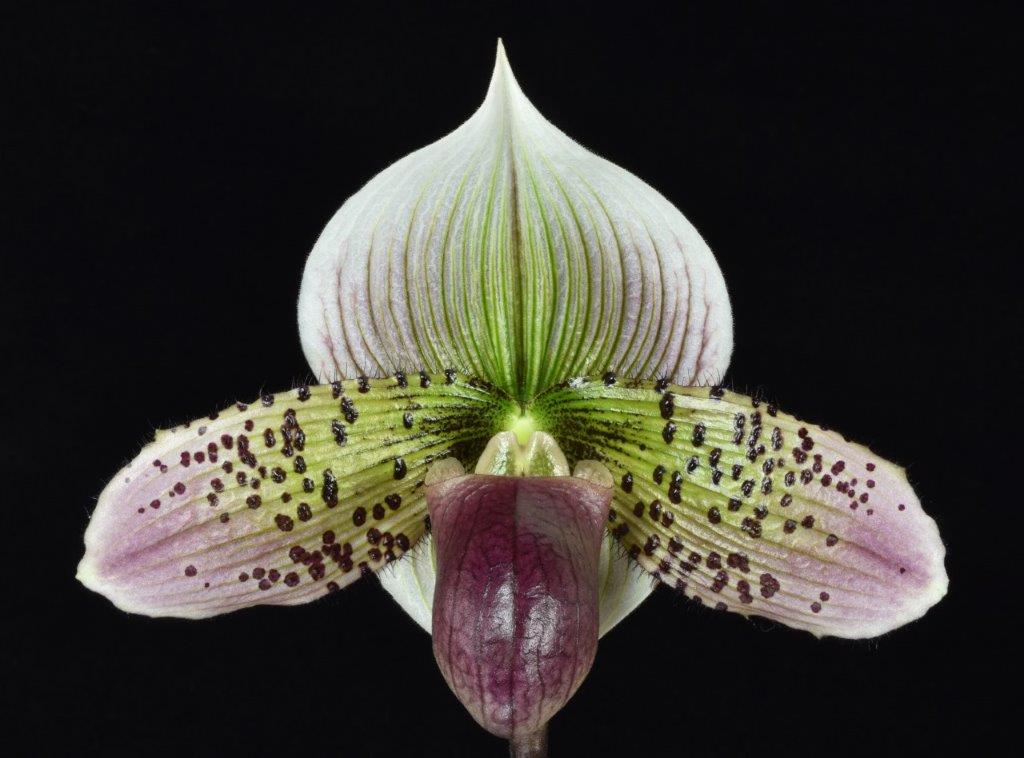 In this location we are able to specialize in intermediate temperature orchids. Our daily highs in summer are about 85 degrees with a 20 degree drop at night. in winter our highs are around 75 and 60 at night. These conditions allow us to specialize in our favorite orchids, Paphiopedilums, Phragmipediums, Angraecums and Lycaste.