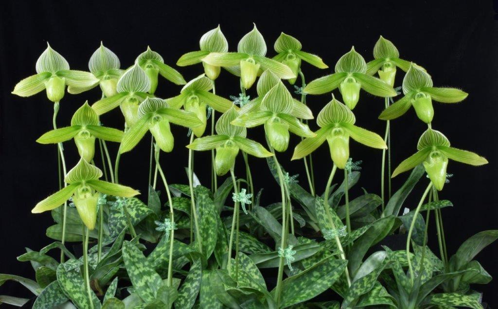 In this location we are able to specialize in intermediate temperature orchids. Our daily highs in summer are about 85 degrees with a 20 degree drop at night. in winter our highs are around 75 and 60 at night. These conditions allow us to specialize in our favorite orchids, Paphiopedilums, Phragmipediums, Angraecums and Lycaste.