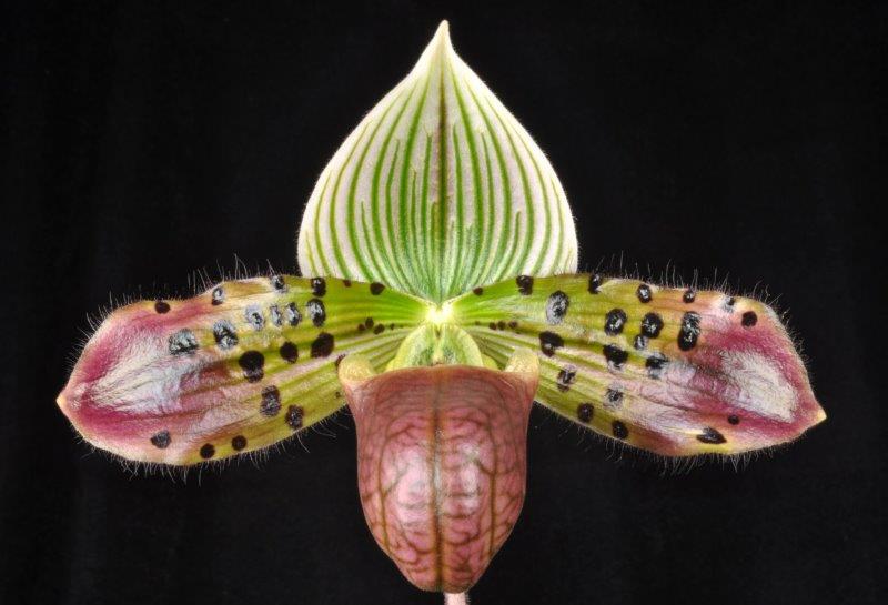 In this location we are able to specialize in intermediate temperature orchids. Our daily highs in summer are about 85 degrees with a 20 degree drop at night. in winter our highs are around 75 and 60 at night. These conditions allow us to specialize in our favorite orchids, Paphiopedilums, Phragmipediums, Angraecums and Lycaste.