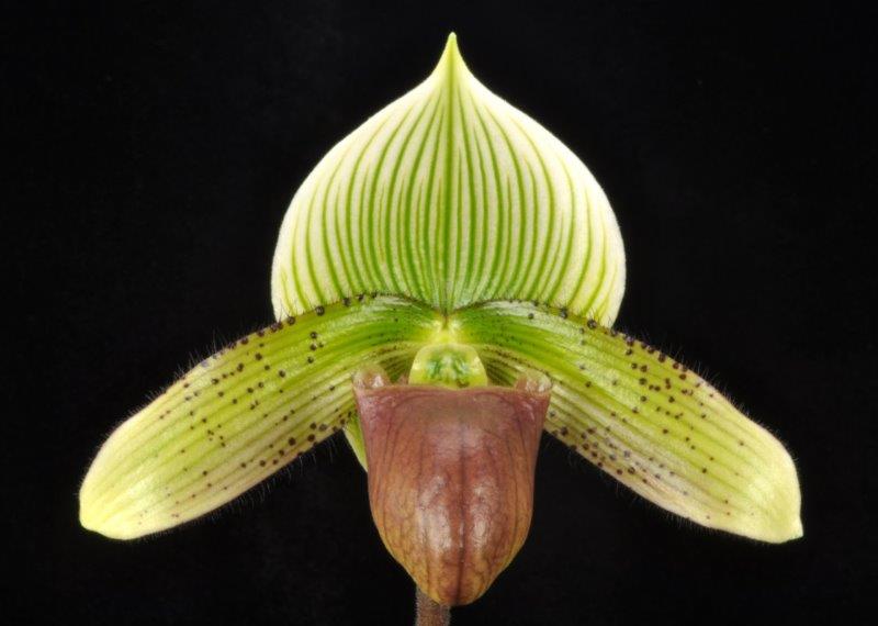 Paphiopedilum Puna Moon ‘Slipper Zone Flying Daawn’ HCC/AOS (78 points 20193774 award photo Barfield)