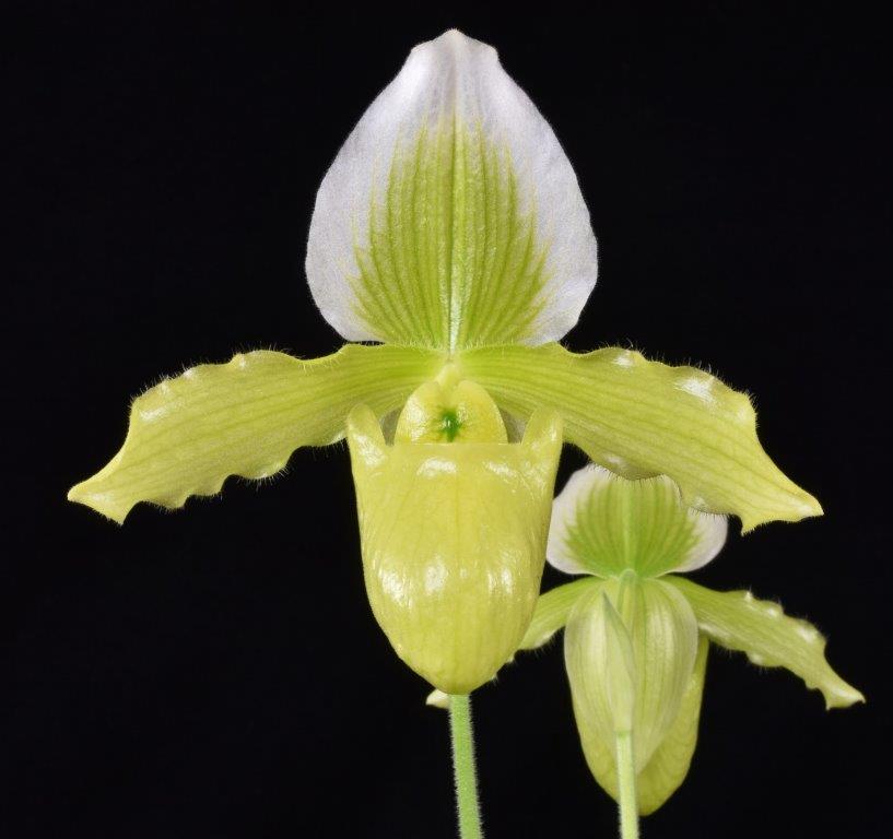 In this location we are able to specialize in intermediate temperature orchids. Our daily highs in summer are about 85 degrees with a 20 degree drop at night. in winter our highs are around 75 and 60 at night. These conditions allow us to specialize in our favorite orchids, Paphiopedilums, Phragmipediums, Angraecums and Lycaste.