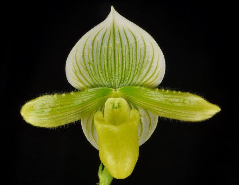 In this location we are able to specialize in intermediate temperature orchids. Our daily highs in summer are about 85 degrees with a 20 degree drop at night. in winter our highs are around 75 and 60 at night. These conditions allow us to specialize in our favorite orchids, Paphiopedilums, Phragmipediums, Angraecums and Lycaste.