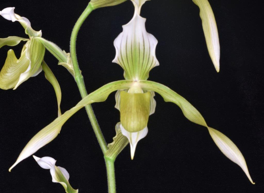 In this location we are able to specialize in intermediate temperature orchids. Our daily highs in summer are about 85 degrees with a 20 degree drop at night. in winter our highs are around 75 and 60 at night. These conditions allow us to specialize in our favorite orchids, Paphiopedilums, Phragmipediums, Angraecums and Lycaste.