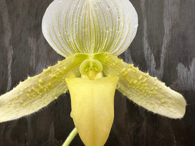In this location we are able to specialize in intermediate temperature orchids. Our daily highs in summer are about 85 degrees with a 20 degree drop at night. in winter our highs are around 75 and 60 at night. These conditions allow us to specialize in our favorite orchids, Paphiopedilums, Phragmipediums, Angraecums and Lycaste.