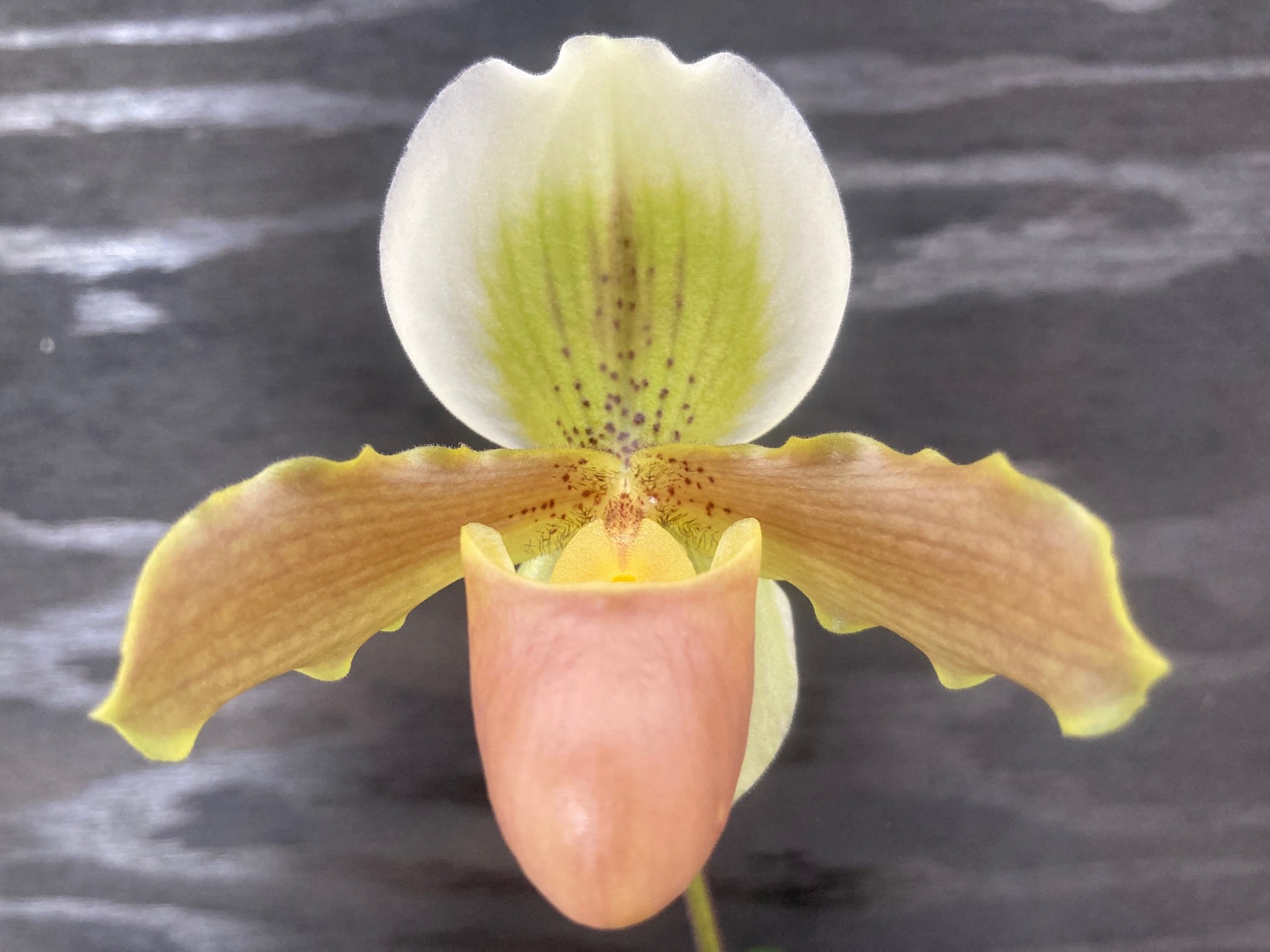 Continuing our late friend Sandra Petcher Song’s attempts to create a teacup size bulldog we took her bulldog crossed with helenae and added another small species, barbigerum. The name celebrates the fact that Sandy went to law school in San Francisco when there was still an area of the city known as the Barbary Coast. Small plant, lots of small flowers.