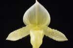 A green & white bred using two of our white Maudiae style Paphs. We are seeing an above average number of white flowers and delightful pale butter yellow flowers. In bud showing a white bud are $100 when part of your wholesale order. Click on the photo to see an unawarded flower.